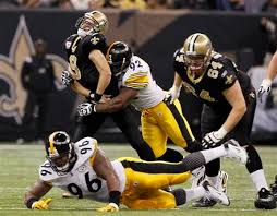 Drew Brees is just another target for Steelers LB James Harrison (Picture reproduced from www.steelersgab.com under Fair Use)